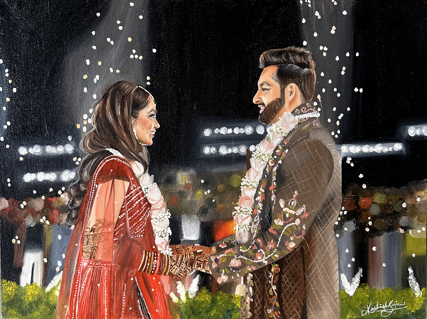 Having an artist painting live at the wedding adds an interactive and entertaining element for guests. They can watch the artwork come to life throughout the event, which can be a memorable and engaging experience. It provides a unique perspective that photographs often can't fully convey.