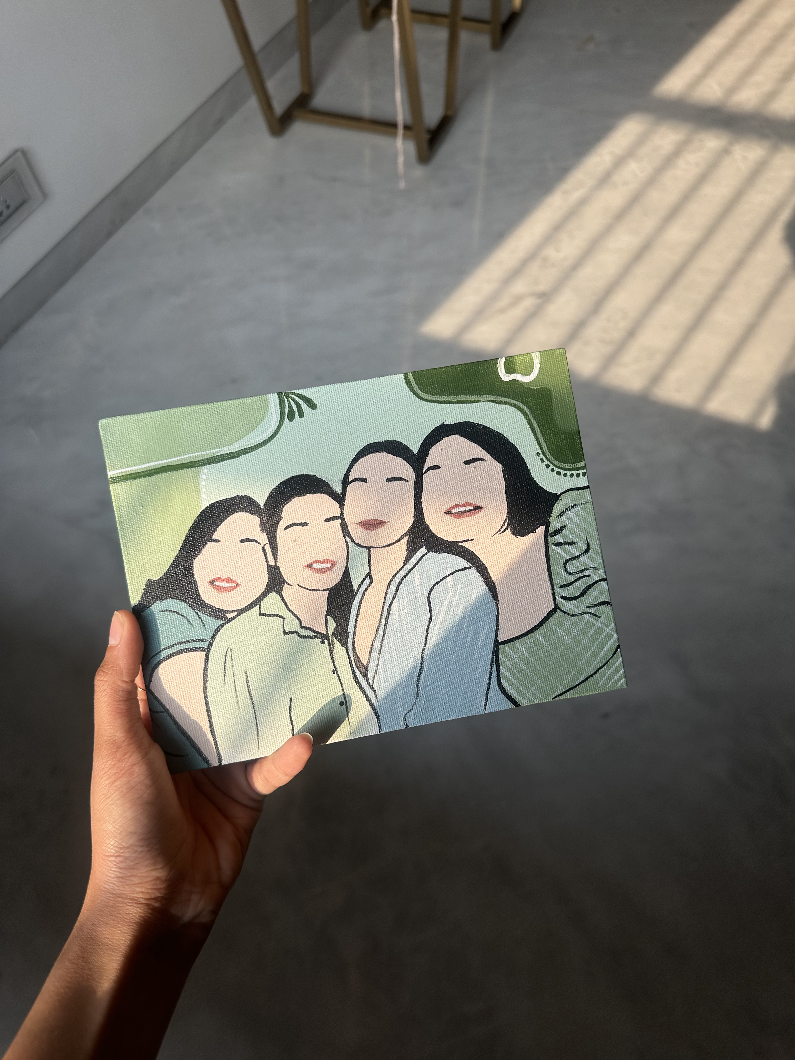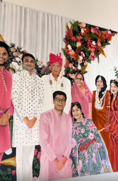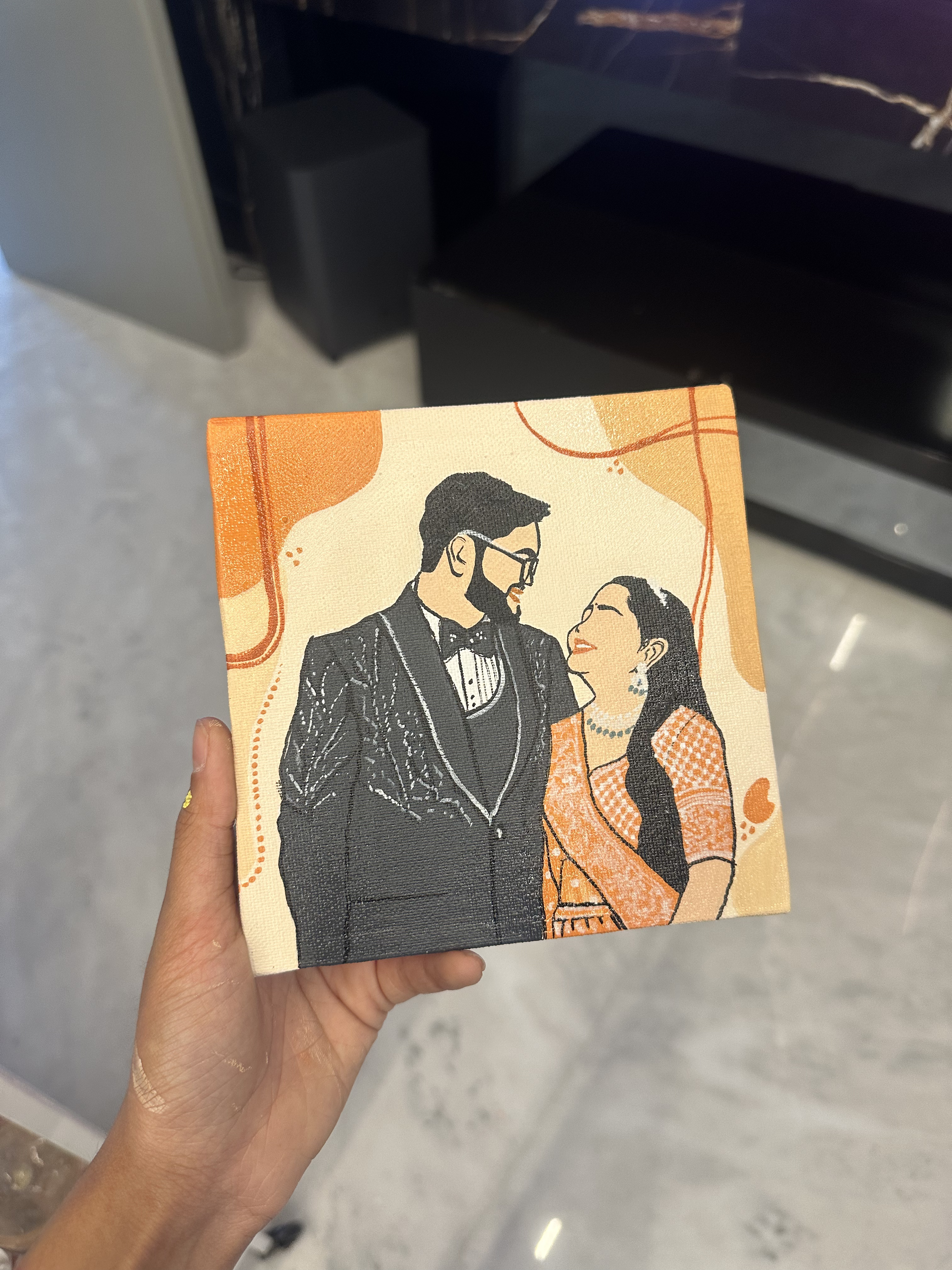 We offer live wedding painting services created during your special day as well as realistic portraits. Additionally, we offer digitally illustrated mini canvases ideal for gifting. Check out our portfolio to see examples of our work and feel free to contact us for more details.